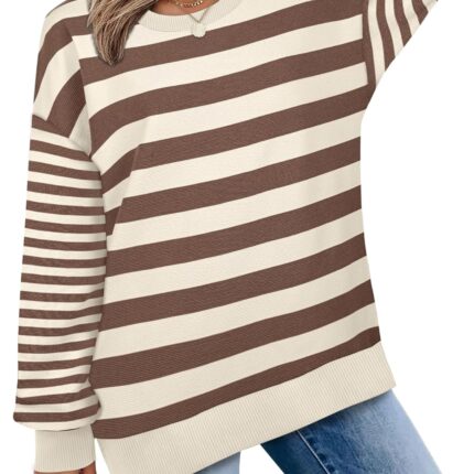 WIHOLL Womens Striped Sweatshirts Loose Fit Crew Neck Long Sleeve Tops Fall Fashion Clothes