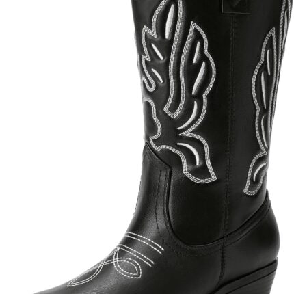 DREAM PAIRS Women’s Cowboy Boots Mid Calf Cowgirl Boots Embroidery Stitched Western Boots