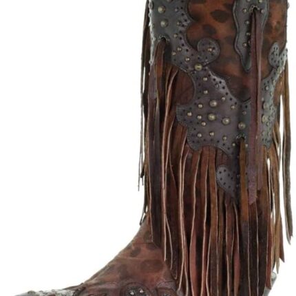 CORRAL Women’s A3618 13″ Leopard Stud and Fringe Snip Toe Handmade Pull-On Fashionable Leather Western Cowboy/Cowgirl Boots