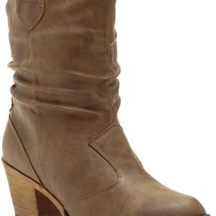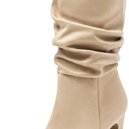 DREAM PAIRS Slouch Boots for Women Mid Calf, Women’s Fashion Almond Toe High Heel Fall Winter Dressy Boots