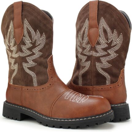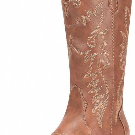 IUV Cowboy Boots For Women Pointy Toe Women’s Western Boots Cowgirl Boots Mid Calf Boots