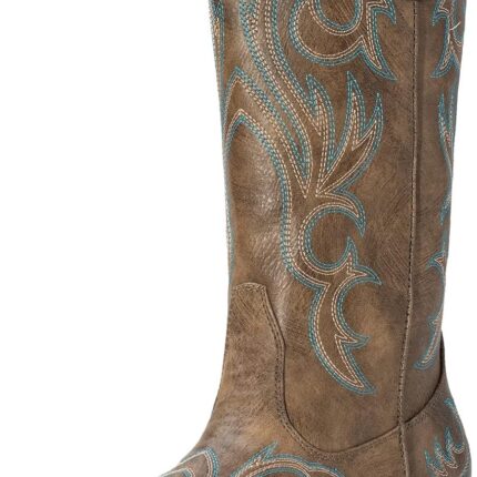 Hawkwell Women’s Mid Calf Western Cowboy Cowgirl Boot Round Toe Embroidered Fashion Boots