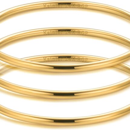 Kainier 3mm 14K Gold Plated Bracelet Stainless Steel Glossy Stackable Thin Round Bangle Bracelet for Women Oval Solid Plain Polished Bracelet Best Gifts for Love