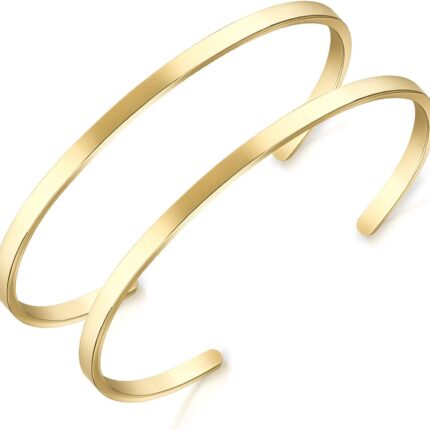 Lolalet Thin Open Cuff Bracelet, Christmas Gift for Girlfriend Wife Mom, 18K Gold Plated Couples Oval Love Bracelets, Plain Polished Finish Open Cuff Bangle Jewelry Gift for Men Women