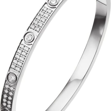 Love Friendship Bracelets Bangle Gold Silver with Cubic Zirconia Stainless Steel Jewelry Oval Bracelet Birthday for Her Women Teen Girls with Gifts Box