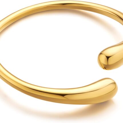 WOWORAMA Teardrop Gold Cuff Bracelets for Women Adjustable 18K Gold Plated Chunky Open Cuff Bangle Bracelets Minimalist Thick Gold Wrist Cuff Bracelets