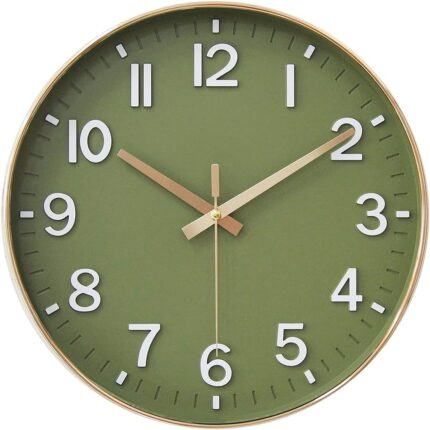 HZDHCLH Wall Clocks Battery Operated,12 inch Silent Non Ticking Modern Wall Clock for Living Room Bedroom Kitchen Office Classroom Decor (Olive Green and Gold)