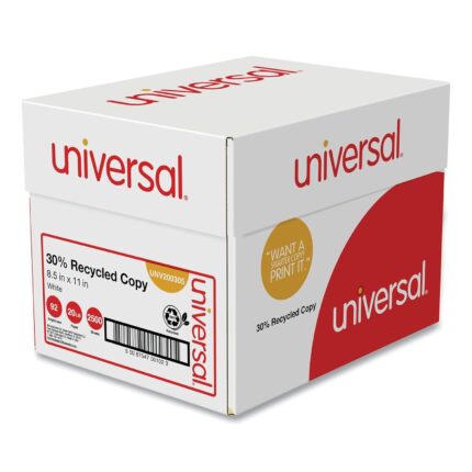 Universal 30% Recycled Copy Paper, 92 Bright, 20 lb., 8.5 x 11, White, 500 Sheets/Ream, 5 Reams/Carton (UNV200305)