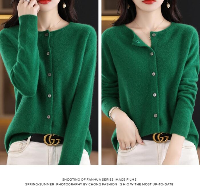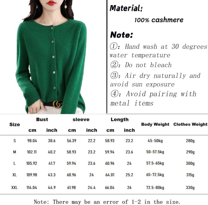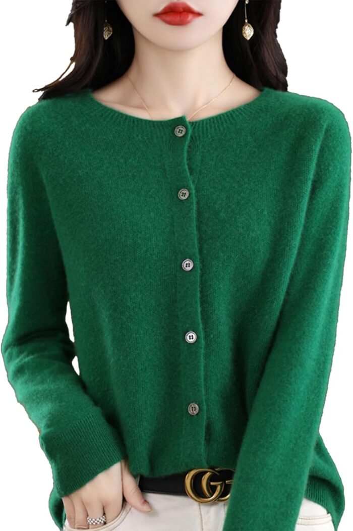 Cashmere Cardigan Sweaters for Women, 100% Cashmere Crew Neck Long Sleeve Soft Cardigans Sweater
