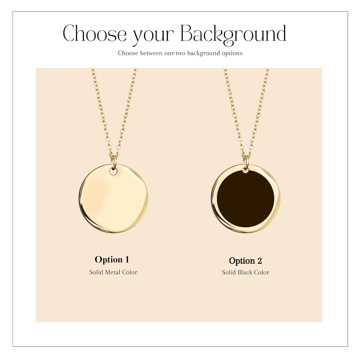 [Custom Engraved Disc Necklace Material Information] Gold Plated, Silver Plated, Rose Gold Plated with Stainless steel. This is better quality than brass or alloy materials. It’s built to last as well with tarnish resistant materials!