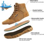 DURABLE & PROTECTIVE – This mens hiking boots upper made of suede leather with 1000D Cordura fabric, which is durable and scratch-resistant. EVA midsole, lightweight and flexible, supply excellent cushioning for work or hiking. All terrain outsole, great grip with geometrical pattern design, non-slip work boots for men. Strengthened toe cap and heel provide full protection, anti-collision and ankle support. Suit for tactical, military, combat, hunting, motorcycle, airsoft boots