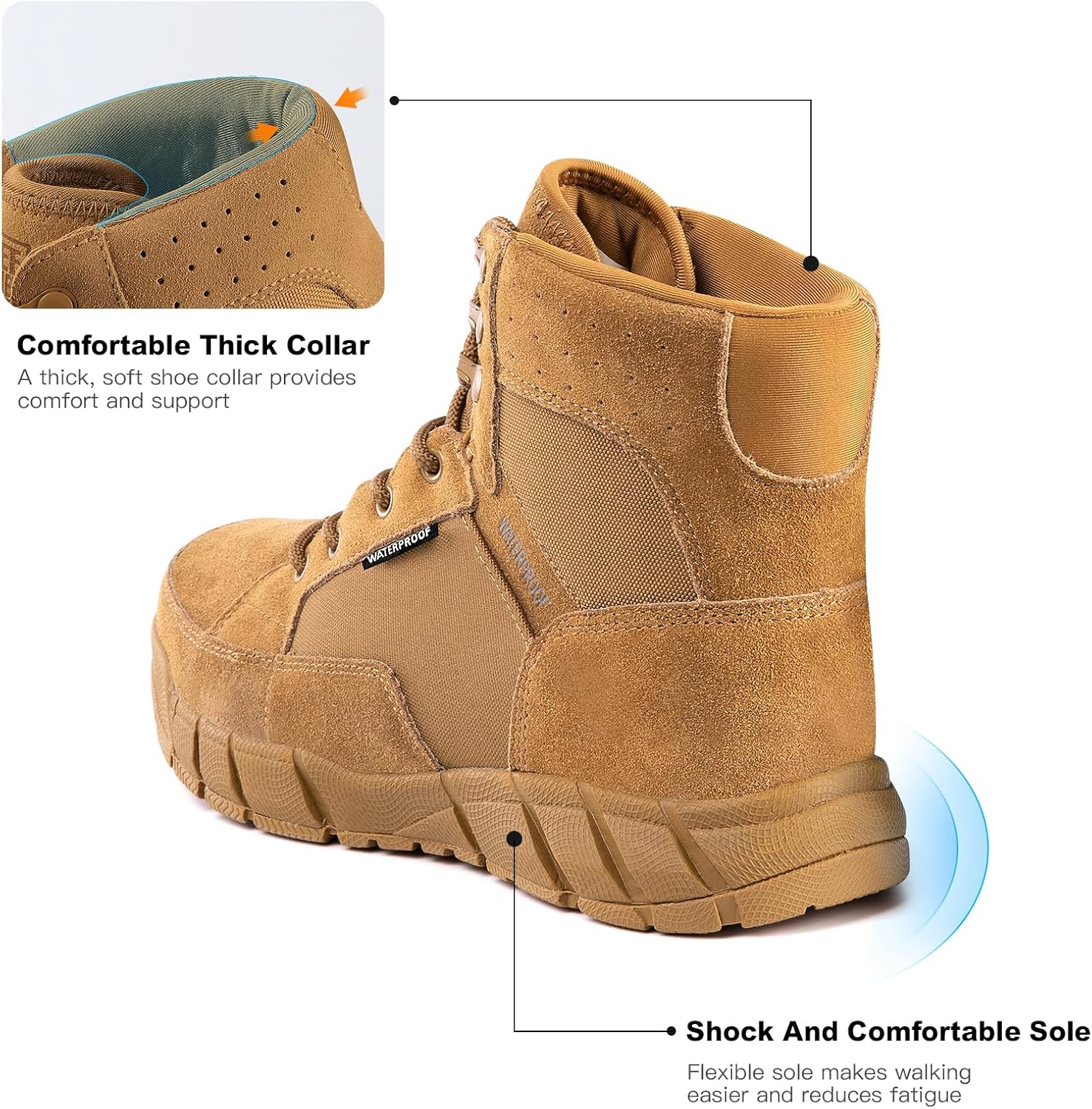 FREE SOLDIER Hiking Work Boots Men’s Tactical Boots 6 Inches Waterproof Military Boots Outdoors Desert Boots