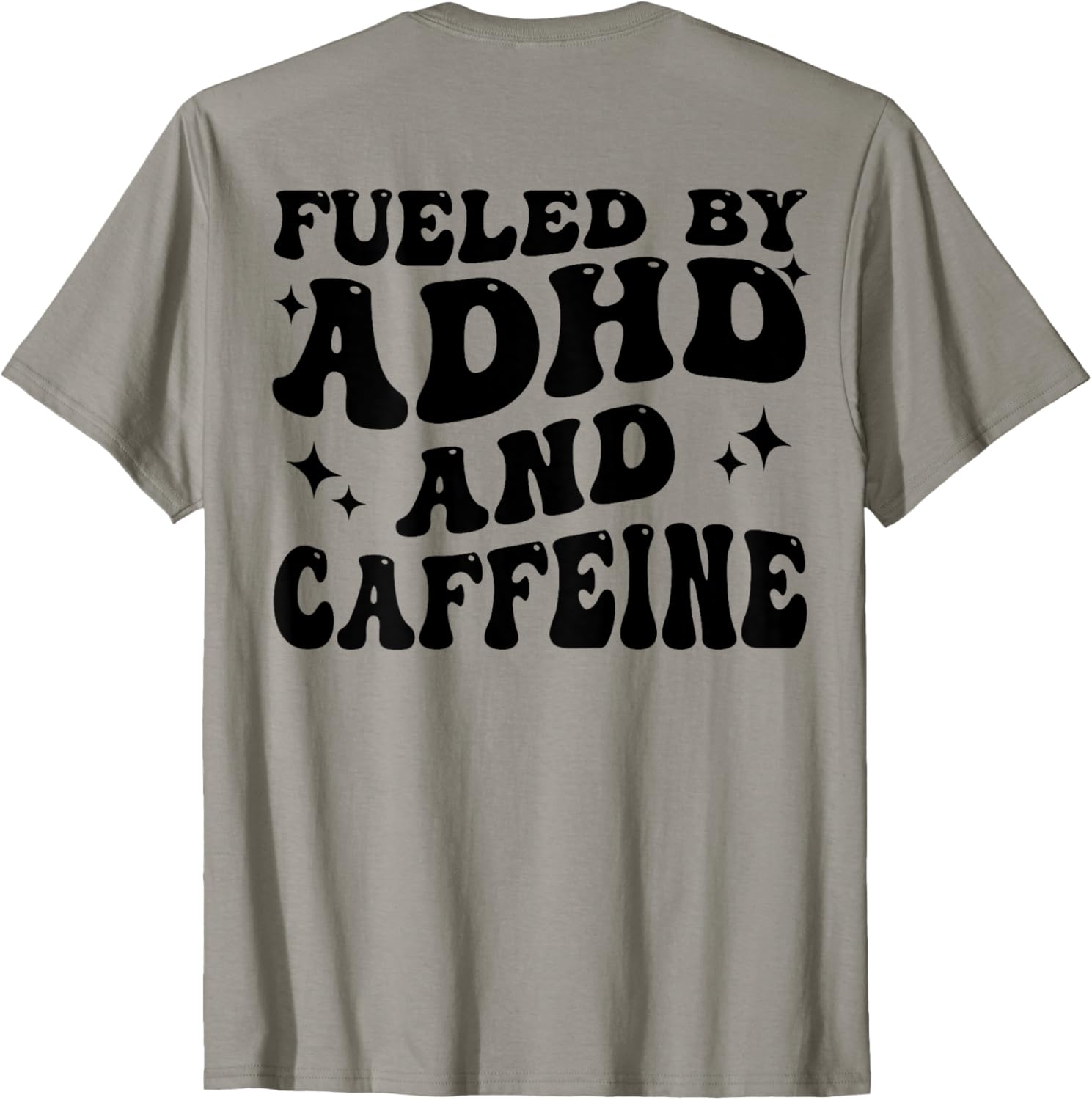 Fueled By ADHD And Caffeine Hyperactivity Adult Humor Quote T-Shirt