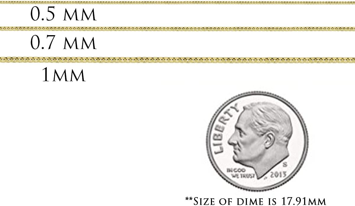 Honolulu Jewelry Company 14K Solid Gold 0.7mm Box Chain Necklace, 16″ – 30″