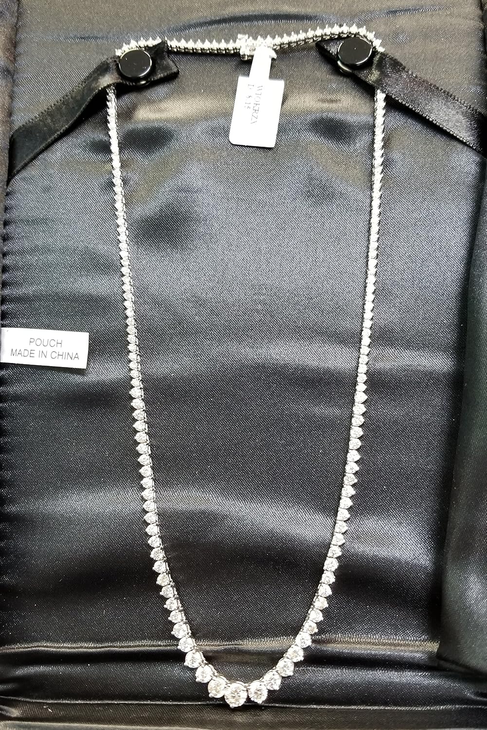 Introducing the Houston Diamond District 20 Carat NATURAL REAL Round 14K White Gold 17″ Uniform Straight Diamond Tennis Riviera Necklace. This stunning necklace features a luxurious 20 carats of sparkling round diamonds in a graduated design, ranging from D-E color and VS1-VS2 clarity. Each diamond is expertly set in a secure 4 prong setting, creating a timeless and elegant look. The necklace is crafted in high quality 14K white gold, adding a touch of luxury to any outfit. This piece is part of our Ultra Premium Collection, making it a must-have for any jewelry lover. Make a statement with this exquisite diamond tennis necklace from Houston Diamond District.