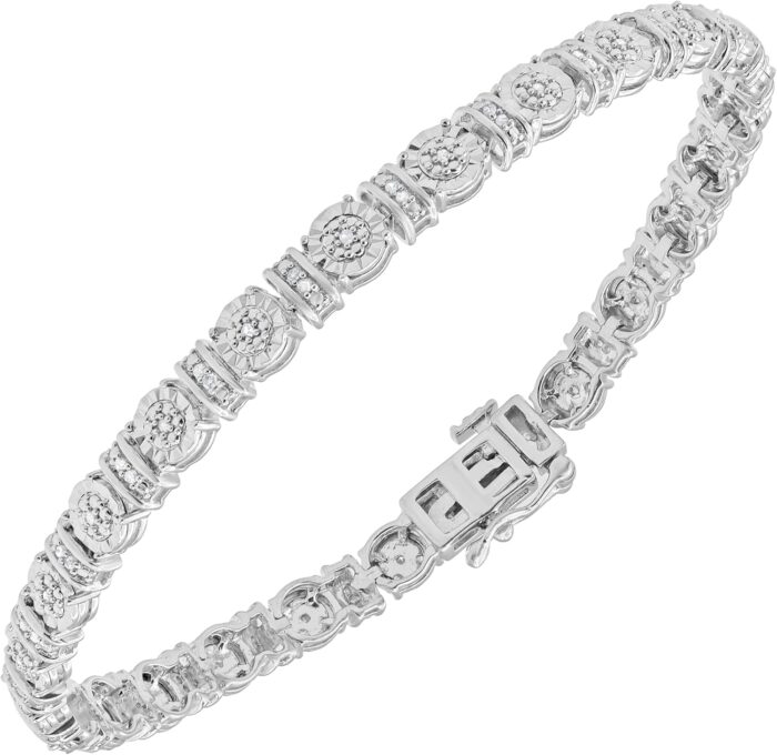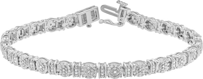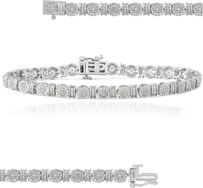 Illusion Set 1/4 Carat Round Cut Natural Diamond Tennis Bracelets for Women in Sterling Silver Jewelry | Timeless Design | Gift for Her | Gift Box Included