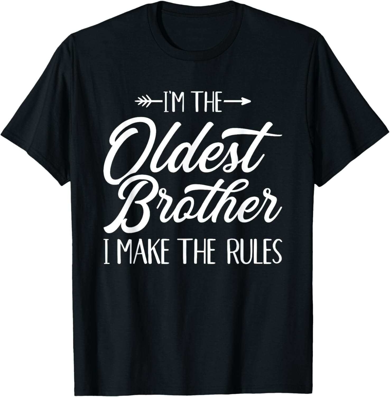 Show everyone who’s in charge with this “I’m the oldest brother I make the rules” t-shirt! Perfect for the eldest sibling who likes to assert their authority, this shirt is made of soft and comfortable fabric, making it perfect for everyday wear. Whether you’re hanging out with your siblings or out with friends, this shirt is sure to make a statement. Available in a variety of sizes, so you can find the perfect fit. Let everyone know who’s boss with this fun and stylish tee!