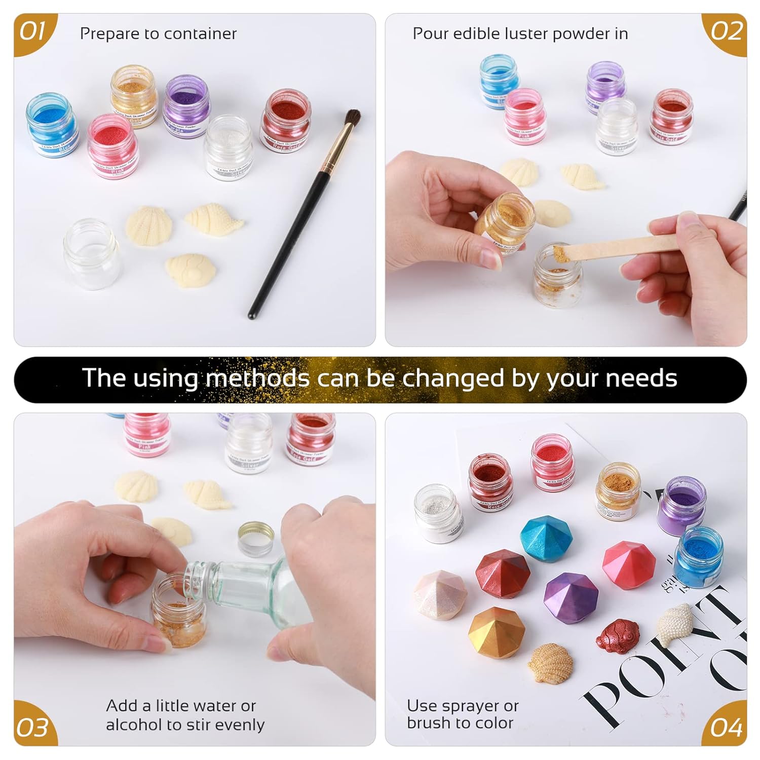【Easy to Use】Whether you are a professional cake artist or a DIY baker, Jelife edible gold powder for strawberries is easy to use. Beginner-friendly and edible gold dust also can be brushed or used spray gun for smoothing when mixed with vodka, grain alcohol, or oil-based flavorings