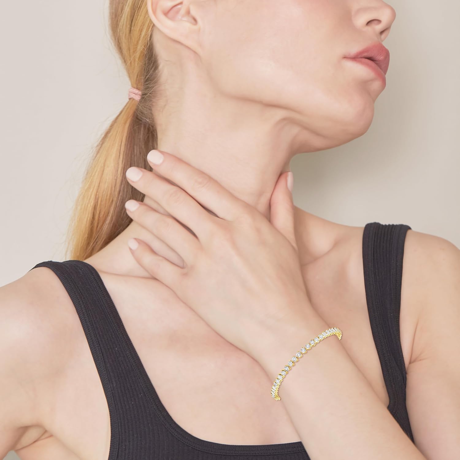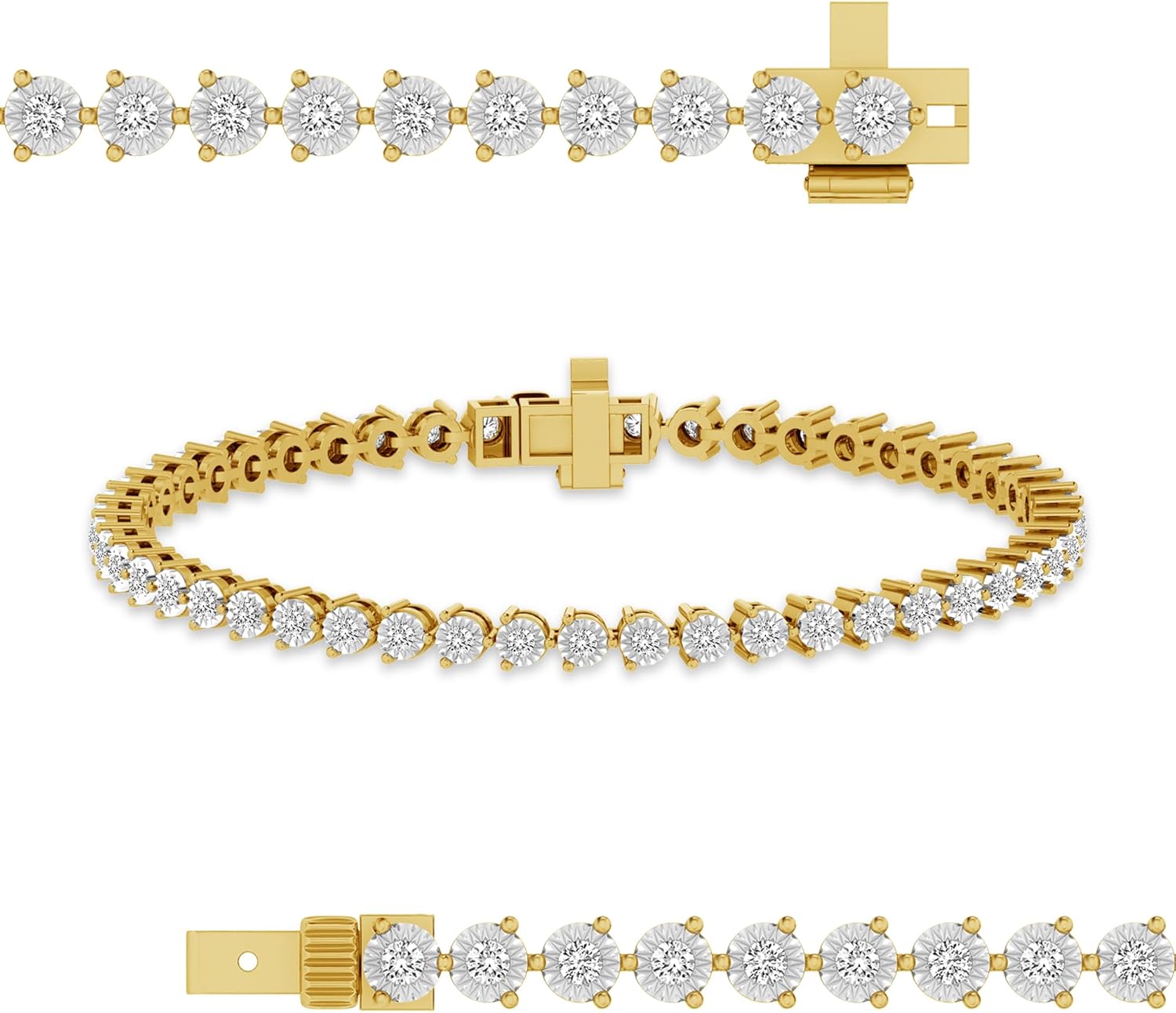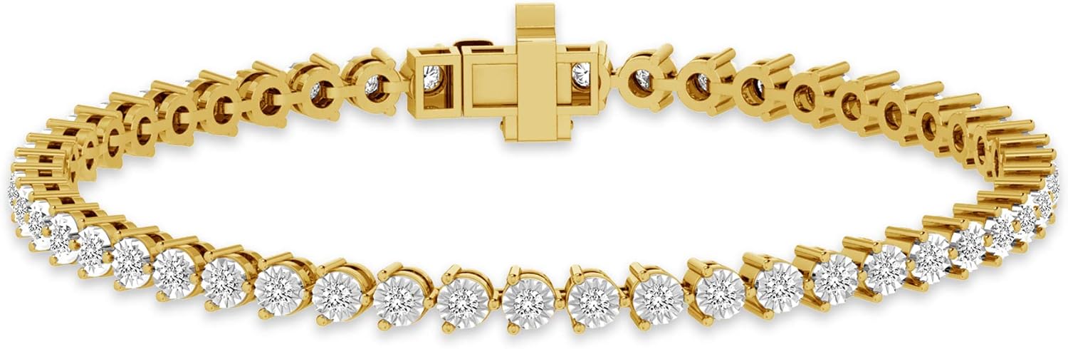 Miracle Plated 1.00 Carat Martini Round Cut Natural Diamond Tennis Bracelet in Flash-plated Sterling Silver | Fine Jewelry for Women | Gift Box Included