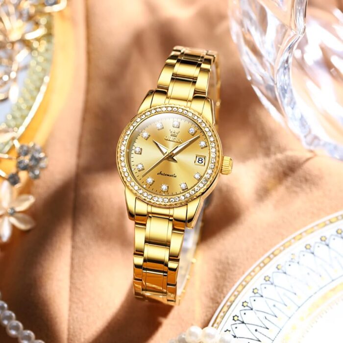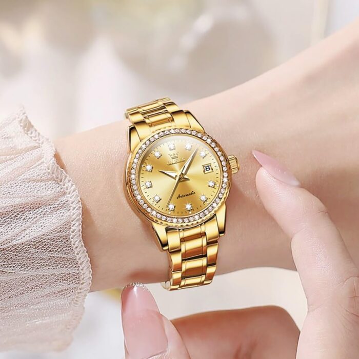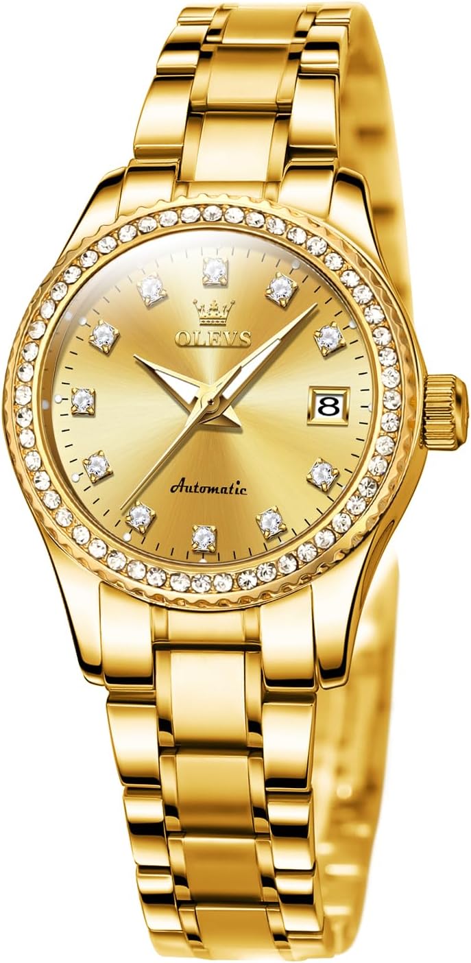 OLEVS Womens Automatic Watches Diamond Stainless Steel Self Winding Ladies Dress Wrist Watches Luminous Waterproof