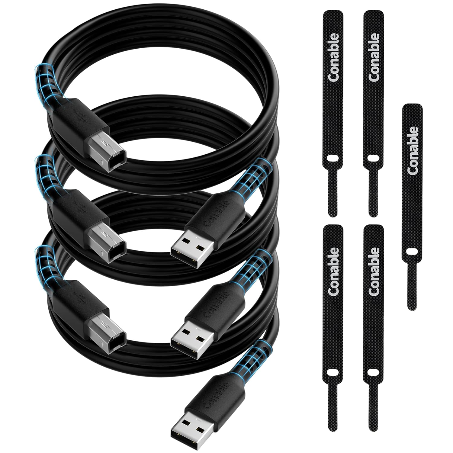 Short USB Printer Cable 2 Feet (3 Pack), USB 2.0 Type-A to B-Male Cord, High Speed Scanner Cord Compatible with HP, Canon, Epson, DAC, Dell, Brother, Xerox, Samsung, Piano with 5 Ties