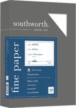 Upgrade your business correspondence with Southworth® 25% Cotton Business Paper. This premium quality paper is designed to make a lasting impression with its crisp white color and smooth texture. Each sheet is 8 1/2″ x 11″ in size and has a weight of 24 lb, giving your documents a professional look and feel. This box contains 500 sheets, making it perfect for all your business needs. Elevate your printed materials with Southworth® 25% Cotton Business Paper.