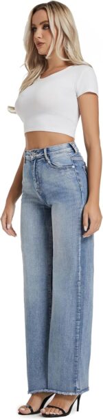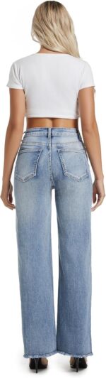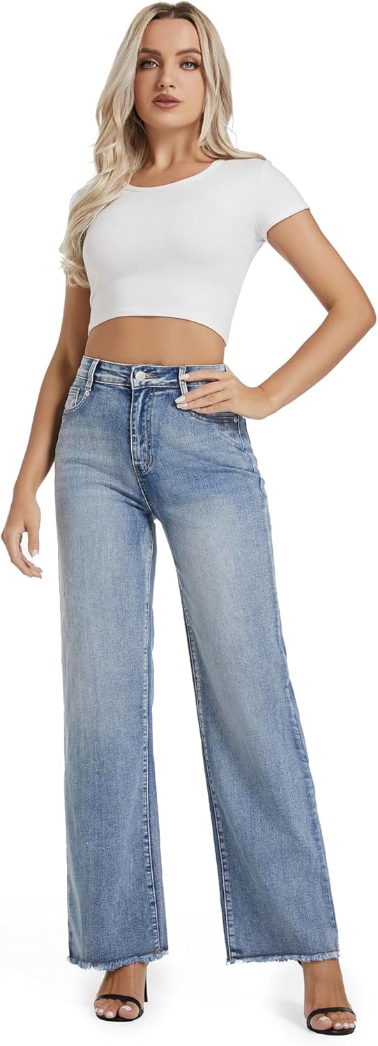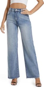 Straight Leg Jeans for Women High Waisted Stretchy Boyfriend Jeans Frayed Raw Hem Loose Jeans Casual Baggy Jeans